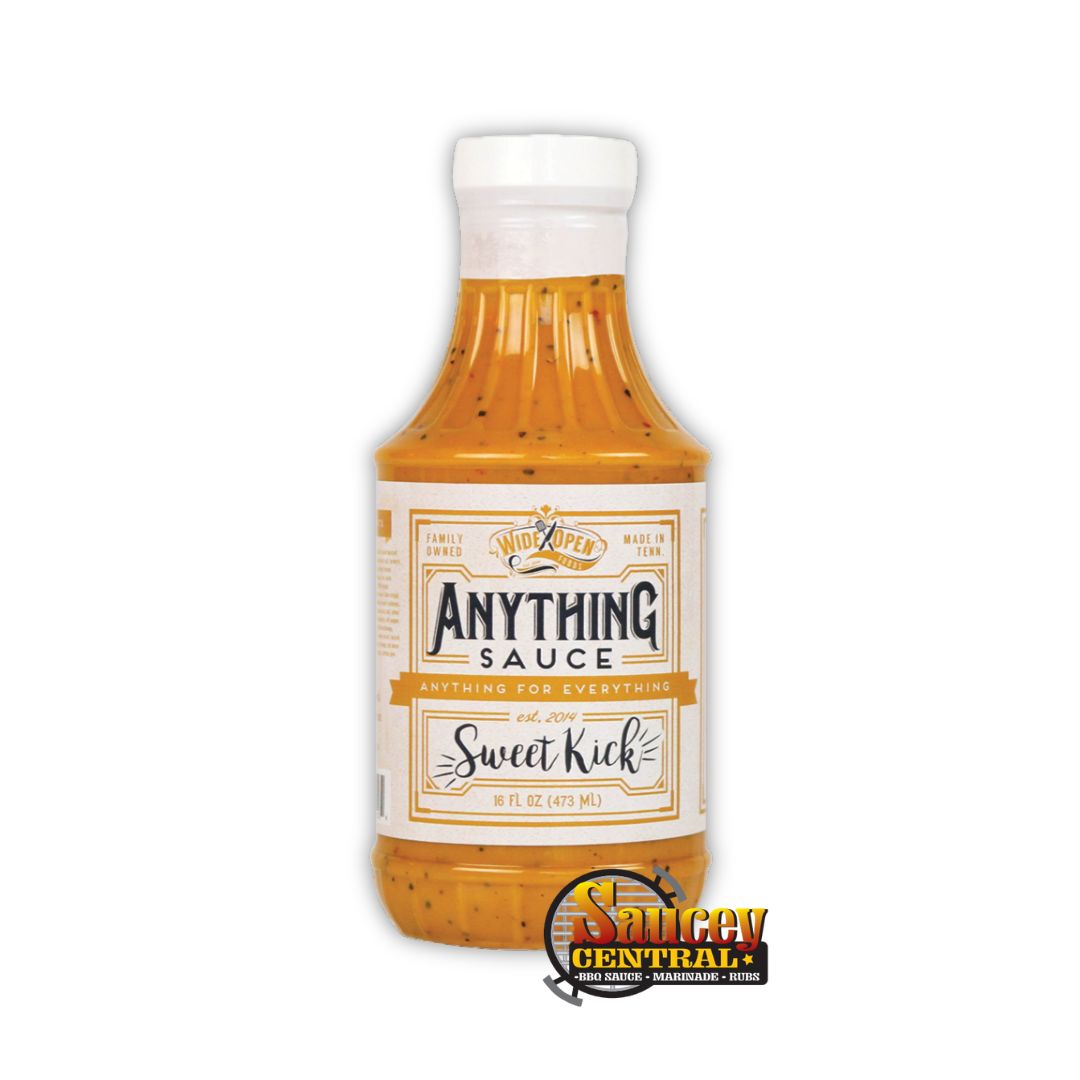 The Sweet Kick Anything Sauce has the flavor of a Carolina Mustard BBQ transformed into Honey Mustard with a kick! Makes a perfect marinade for baked chicken, pork or ham. Add a dollop or two to coleslaw, potato salad, or deviled eggs. Use as a dip for chicken tenders or fried green tomatoes. If you like a little sweet and a little heat, then Sweet Kick is perfect for you! 16oz.