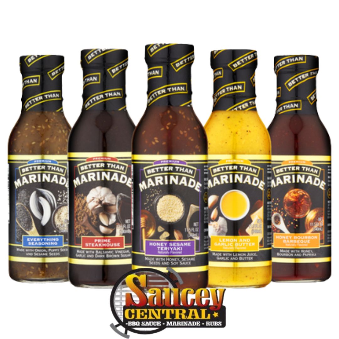 Unleash your culinary creativity with five delicious flavors of ready-made marinades that are sure to elevate everything you throw onto the grill. 11.5oz bottles.