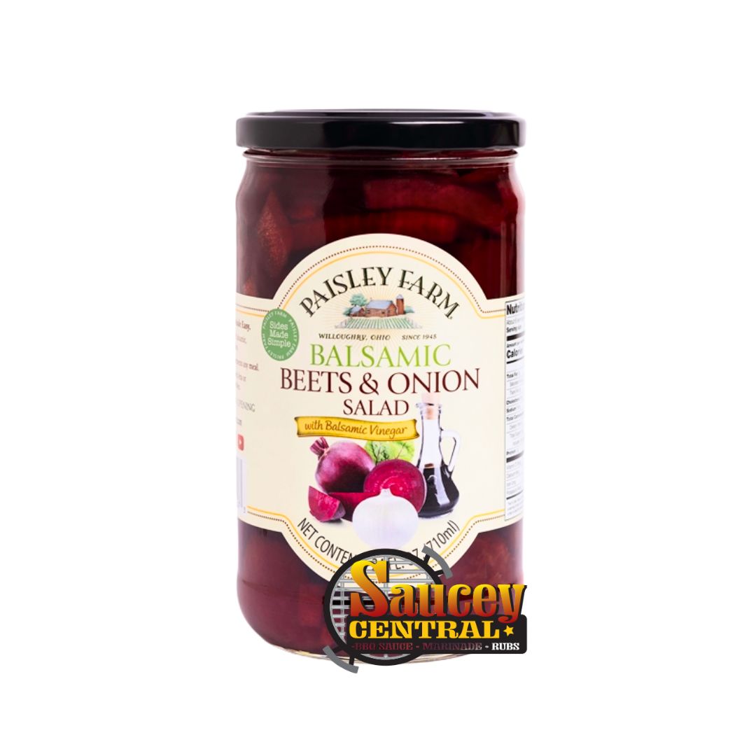 A fresh new offering from Paisley Farm, a savory combination of sweet pickled beets and onions in a flavorful balsamic vinegar sauce. Prepared to be served as-is from the jar. Perfect to be served on top of greens or as a side to grilled meats. Gluten, Soy, and Dairy Free. 24oz jar.